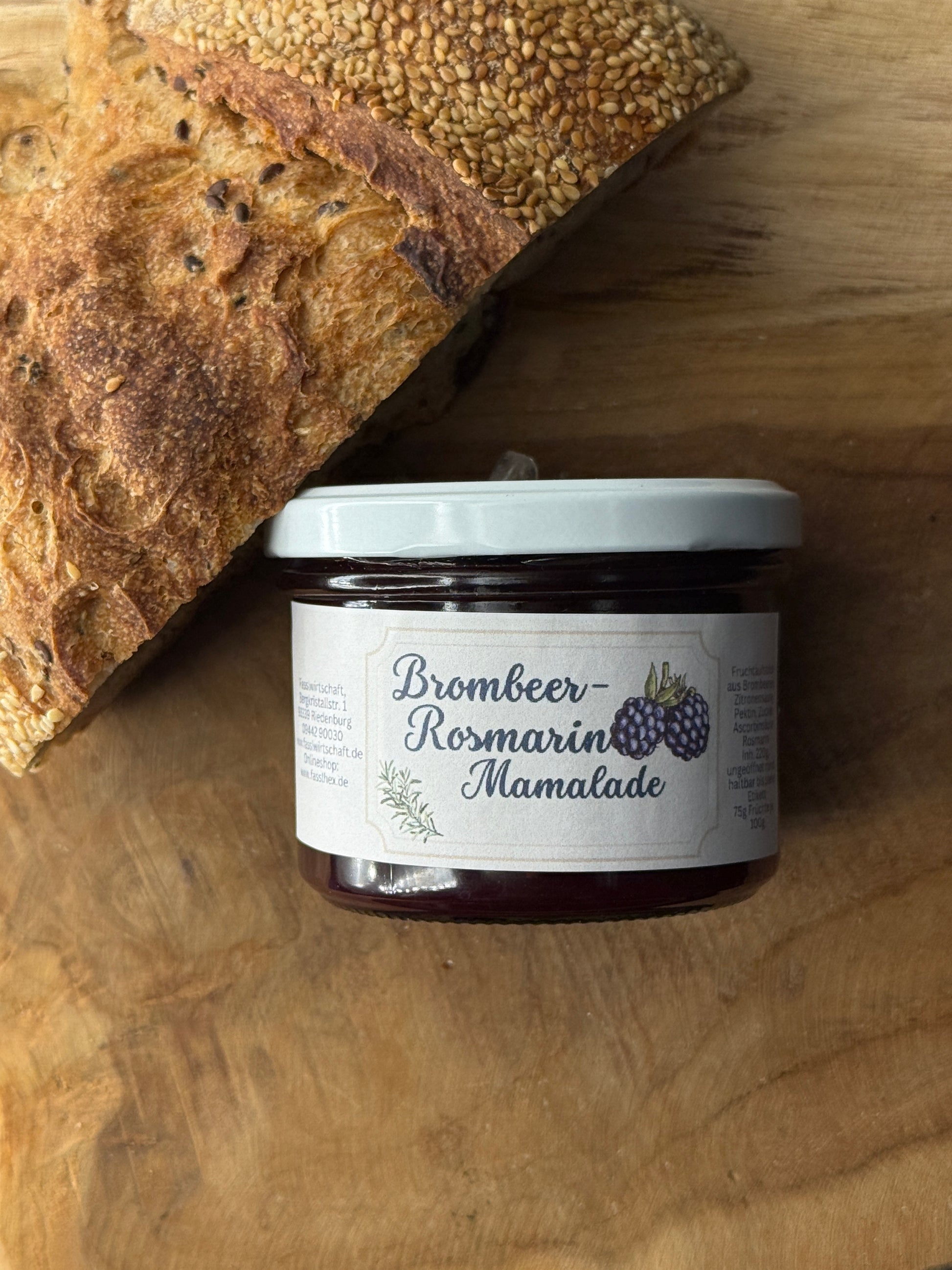 Dunkle, aromatische Brombeeren treffen auf den herben, mediterranen Duft von Rosmarin – eine außergewöhnliche Kombination für alle, die das Besondere lieben. Ob zu Käse, Wildgerichten oder einfach aufs Brot: Diese Marmelade bringt Tiefe, Charakter und einen Hauch Wald & Wiese aufs Glas.